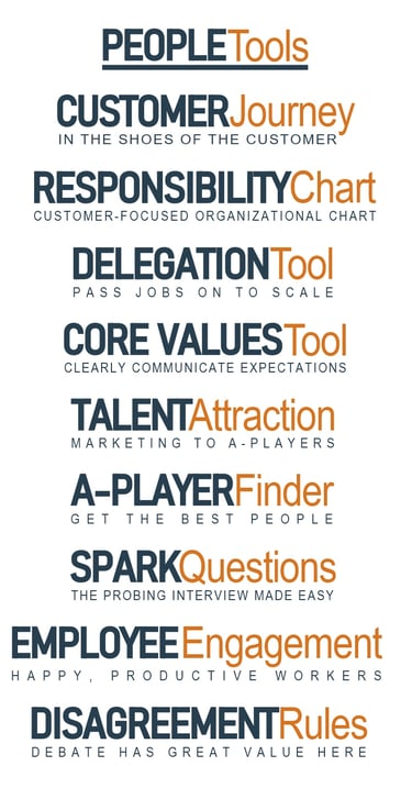 Your team will walk through each of the tools in hands-on, focused development days. Together, we'll tailor systems in goal setting, marketing, sales, lead generation, motivation, leadership development, lean, hiring, marketing, and more.