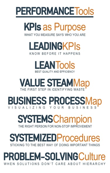 Performance Tools – Tools to track business results, solve problems, and support continuous improvement.