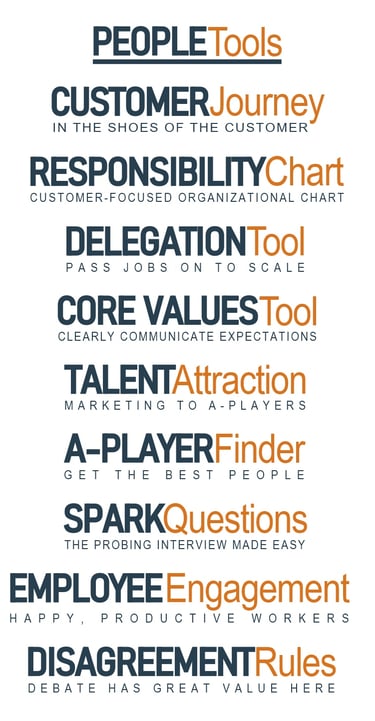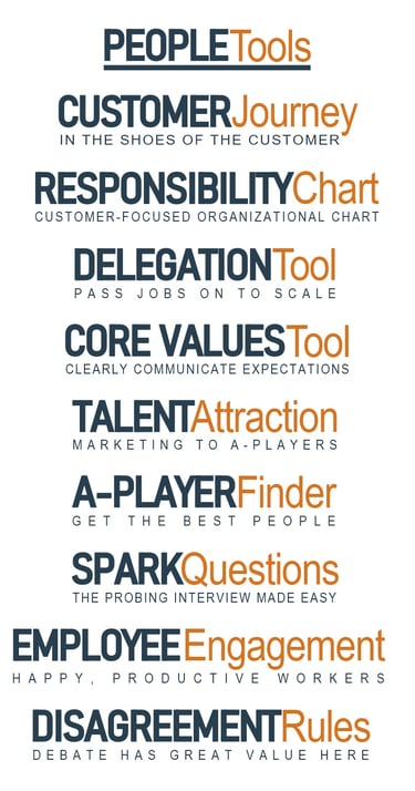 People Tools – Tools to hire the right people, train them effectively, improve leadership, and increase employee engagement.